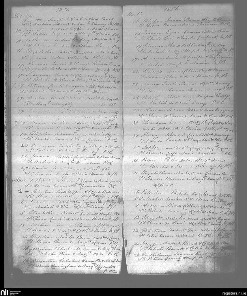 Killucan; County of Roscommon; Diocese of Elphin. Baptisms, Feb. 1856 to Apr. 1856
