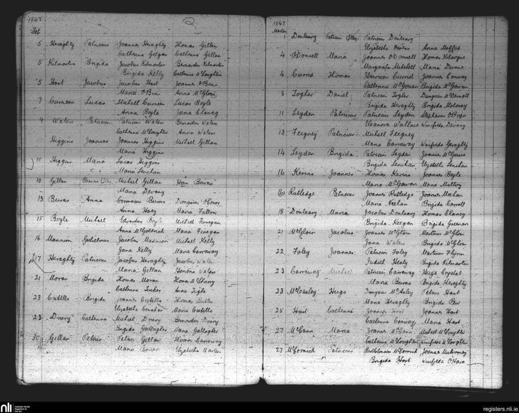 Drumcliff; County of Sligo; Diocese of Elphin. Baptisms, Feb. 1847 to Mar. 1847