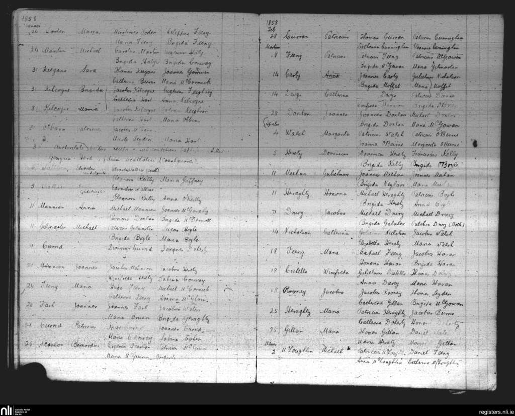 Drumcliff; County of Sligo; Diocese of Elphin. Baptisms, Jan. 1858 to May 1858