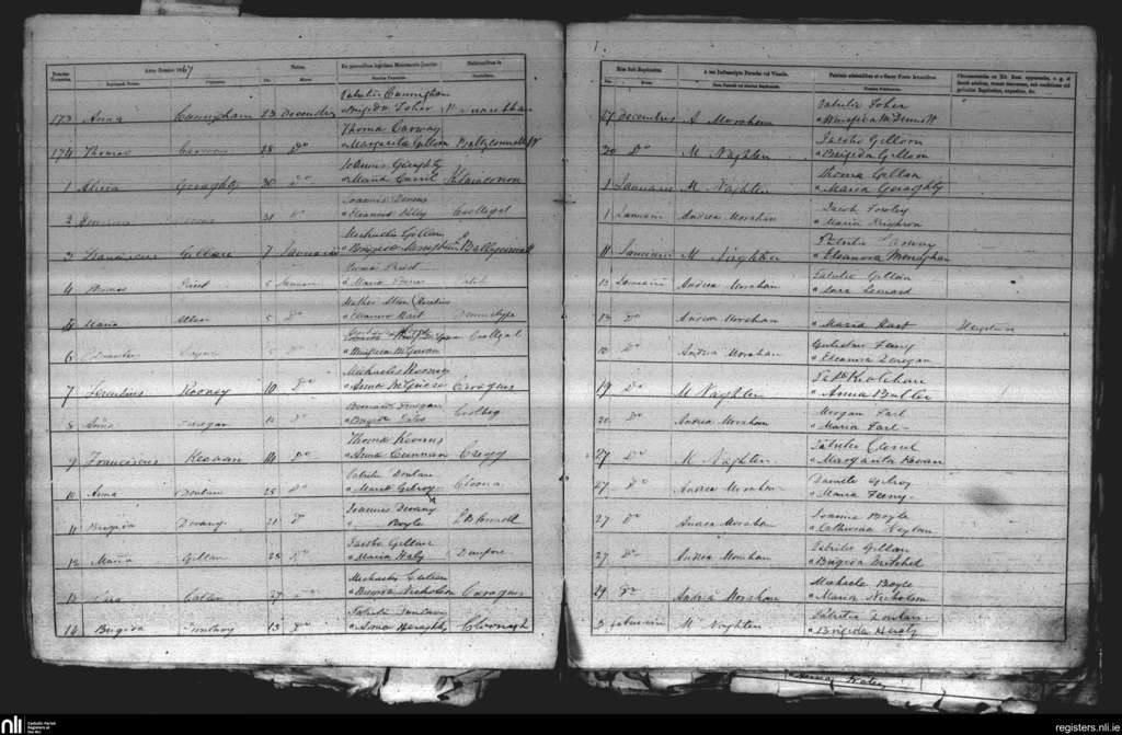 Drumcliff; County of Sligo; Diocese of Elphin. Baptisms, Dec. 1866 to Feb. 1867
