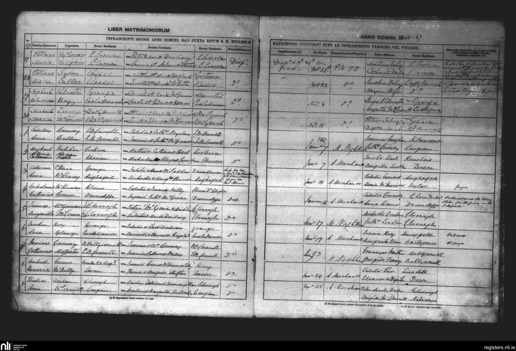 Drumcliff; County of Sligo; Diocese of Elphin. Marriages, Oct. 1866 to Jan. 1867