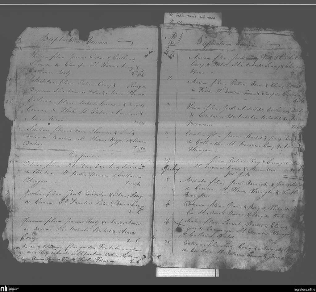Elphin; County of Roscommon; Diocese of Elphin. Baptisms, May 1807 to July 1807