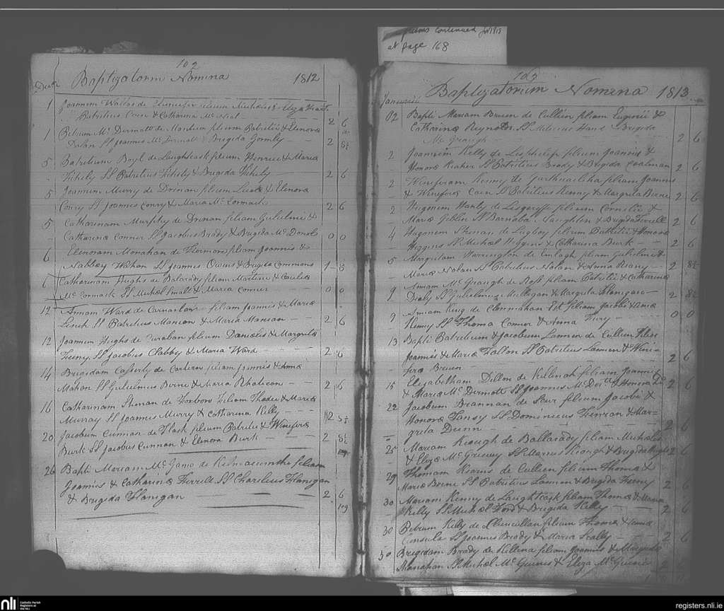 Elphin; County of Roscommon; Diocese of Elphin. Baptisms, Dec. 1812 to Jan. 1813