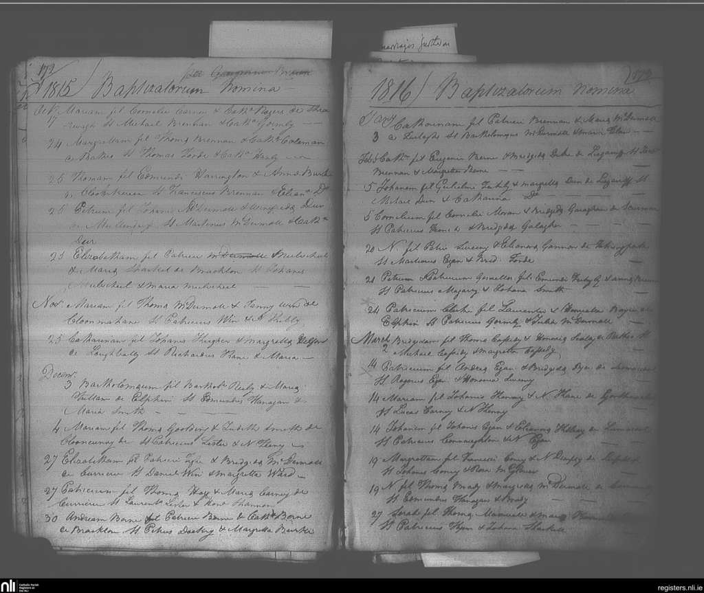 Elphin; County of Roscommon; Diocese of Elphin. Baptisms, Oct. 1815 to Mar. 1816