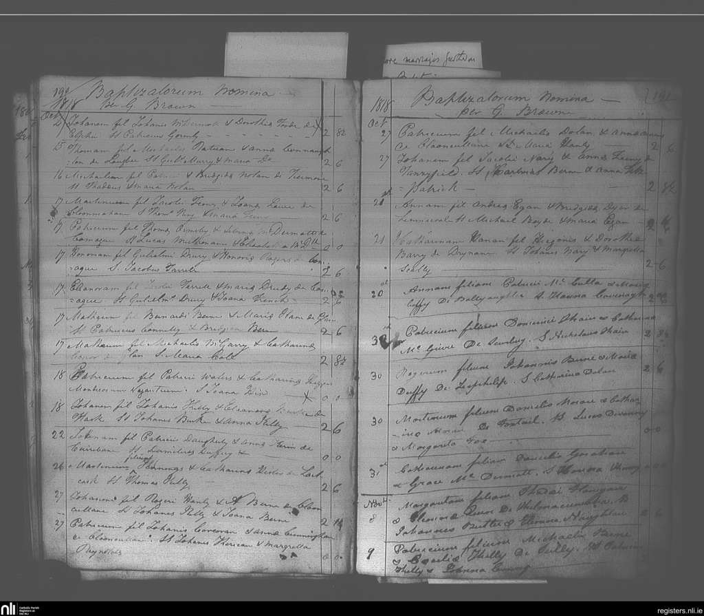 Elphin; County of Roscommon; Diocese of Elphin. Baptisms, Oct. 1818 to Nov. 1818
