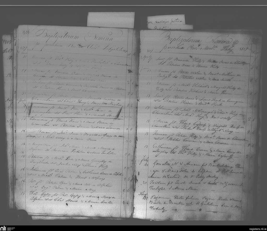 Elphin; County of Roscommon; Diocese of Elphin. Baptisms, Mar. 1819 to Aug. 1819