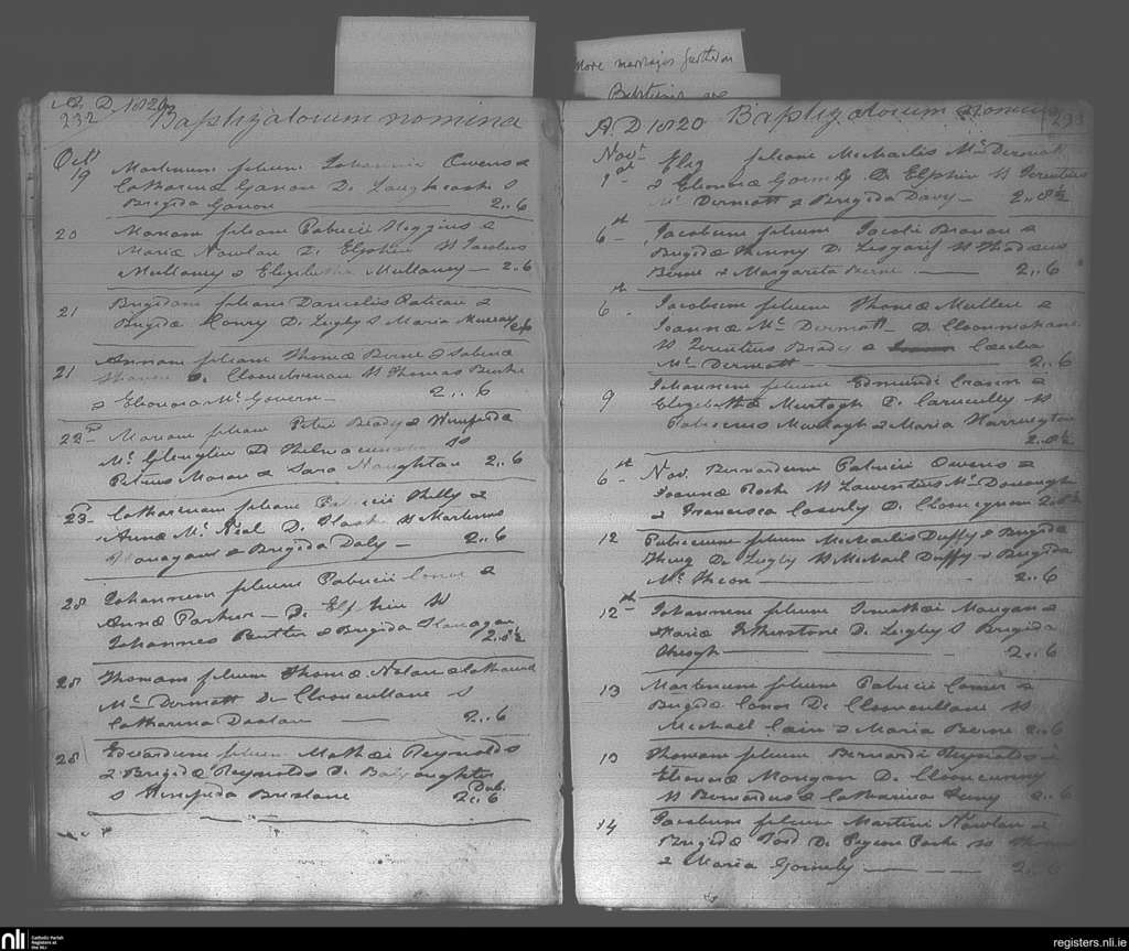 Elphin; County of Roscommon; Diocese of Elphin. Baptisms, Oct. 1820 to Nov. 1820