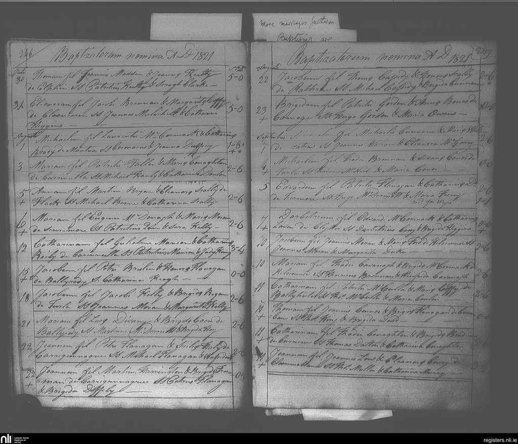 Elphin; County of Roscommon; Diocese of Elphin. Baptisms, July 1821 to Sep. 1821