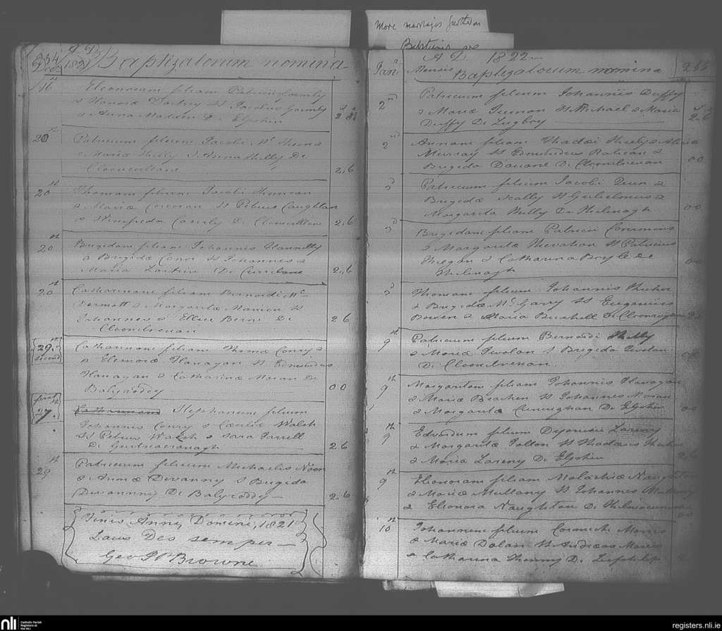 Elphin; County of Roscommon; Diocese of Elphin. Baptisms, Dec. 1821 to Jan. 1822