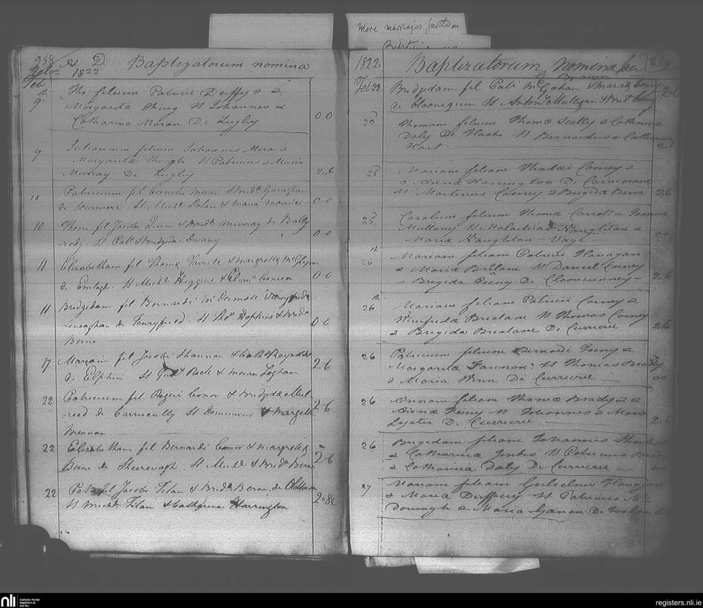 Elphin; County of Roscommon; Diocese of Elphin. Baptisms, Feb. 1822