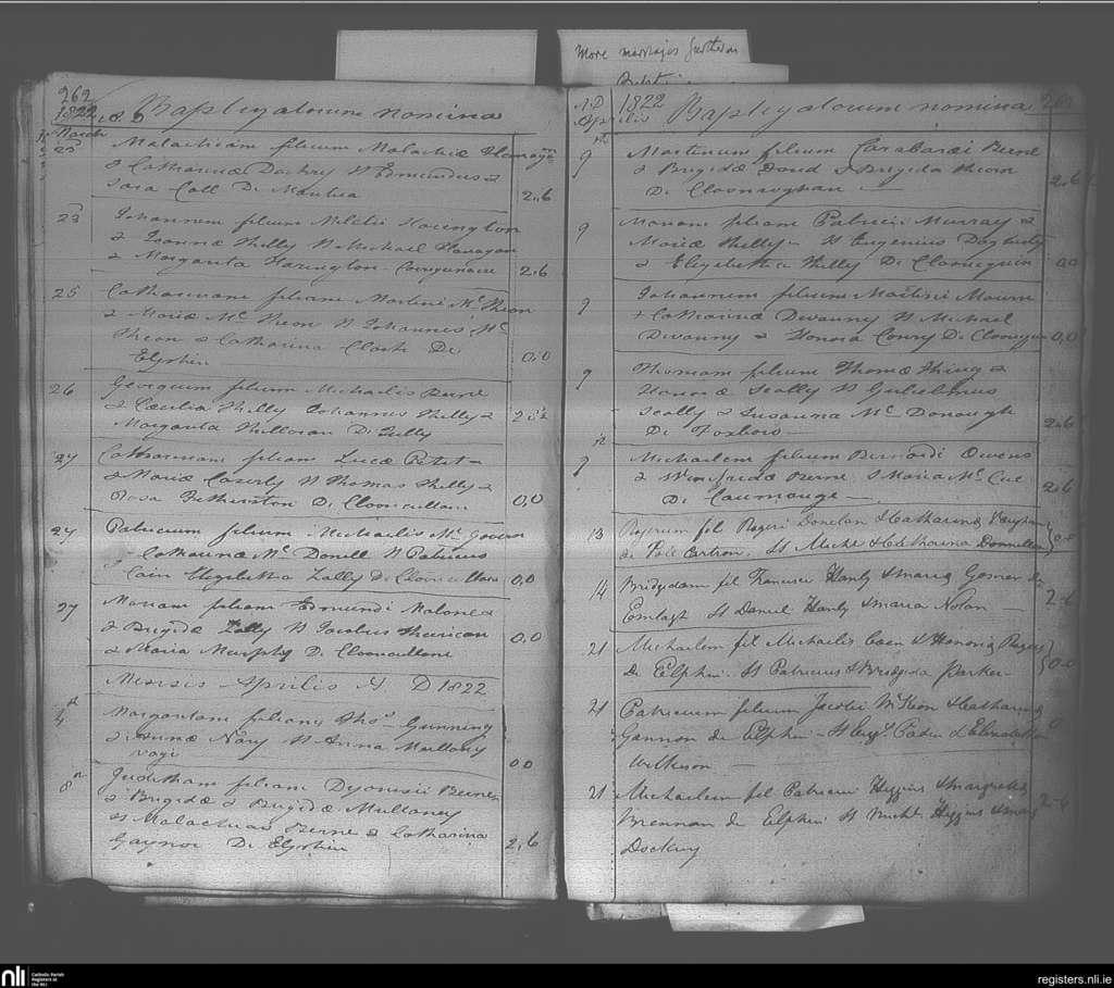 Elphin; County of Roscommon; Diocese of Elphin. Baptisms, Mar. 1822 to Apr. 1822