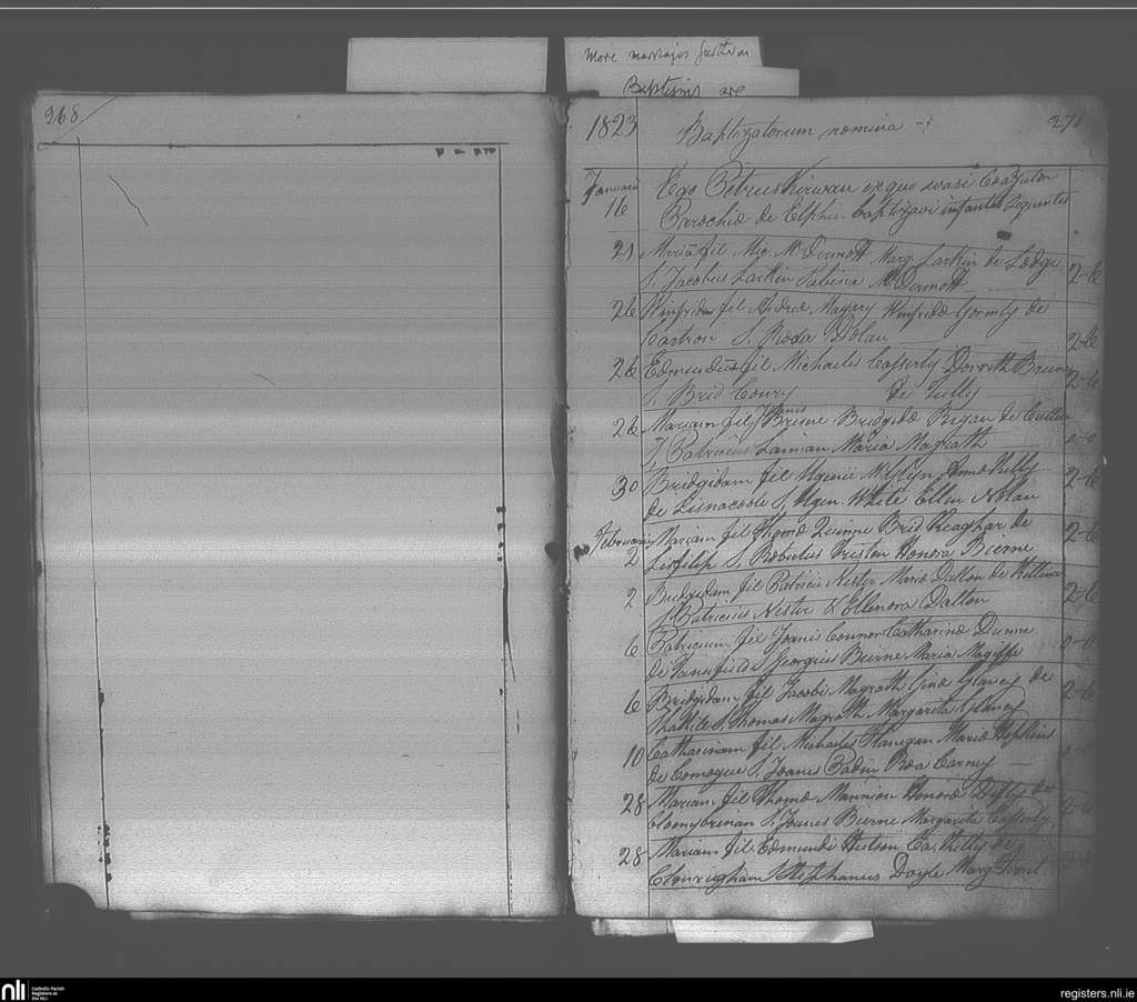 Elphin; County of Roscommon; Diocese of Elphin. Baptisms, Jan. 1823 to Feb. 1823