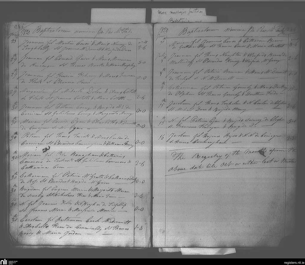 Elphin; County of Roscommon; Diocese of Elphin. Baptisms, June 1820 to July 1820