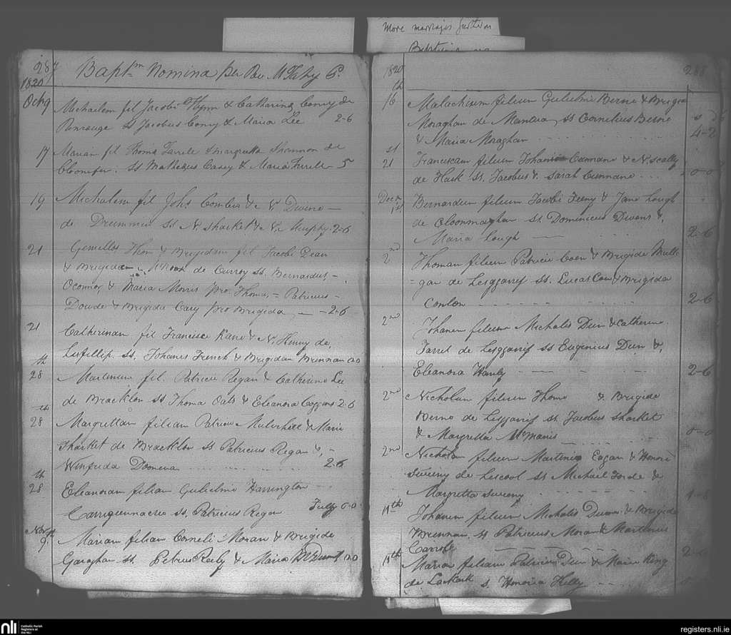 Elphin; County of Roscommon; Diocese of Elphin. Baptisms, Oct. 1820 to Dec. 1820