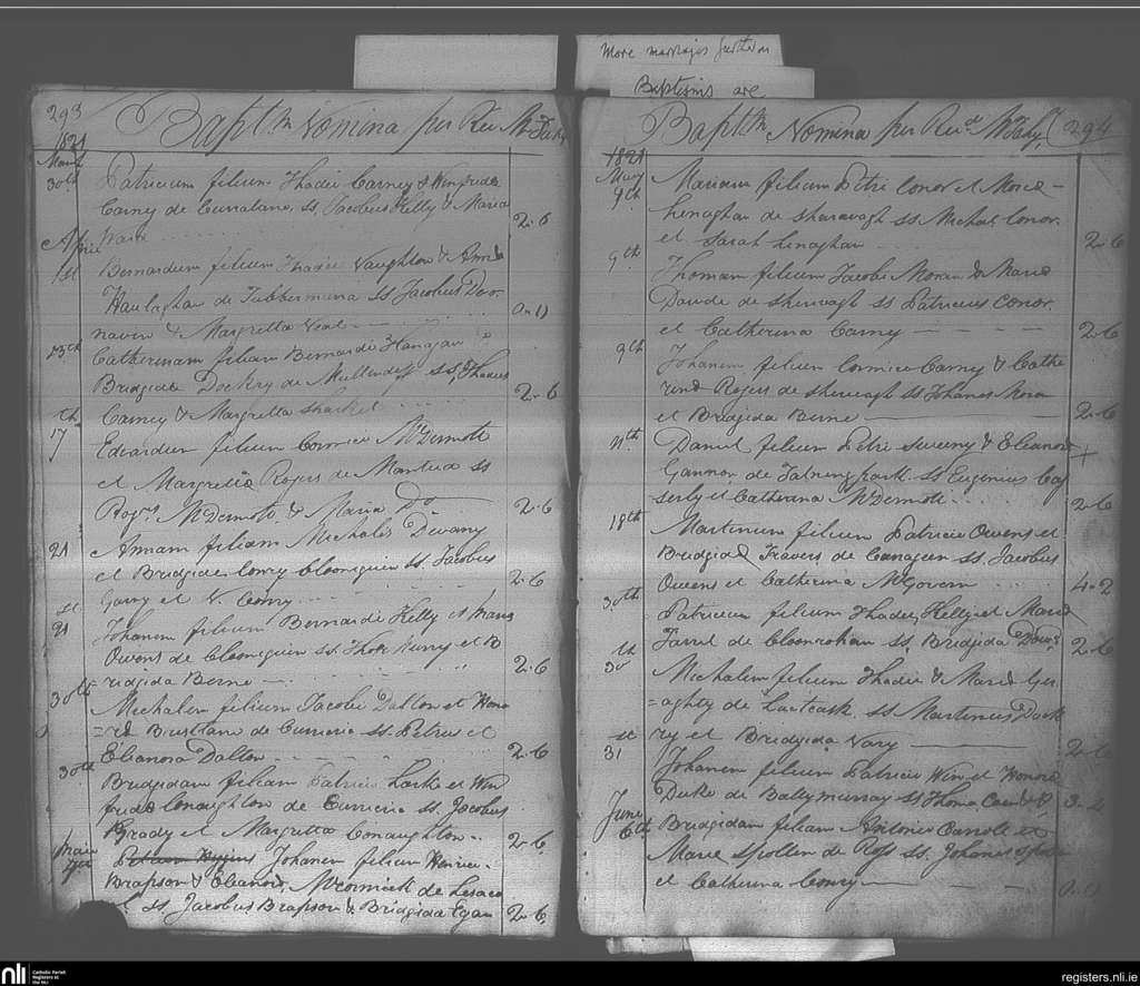 Elphin; County of Roscommon; Diocese of Elphin. Baptisms, Mar. 1821 to June 1821