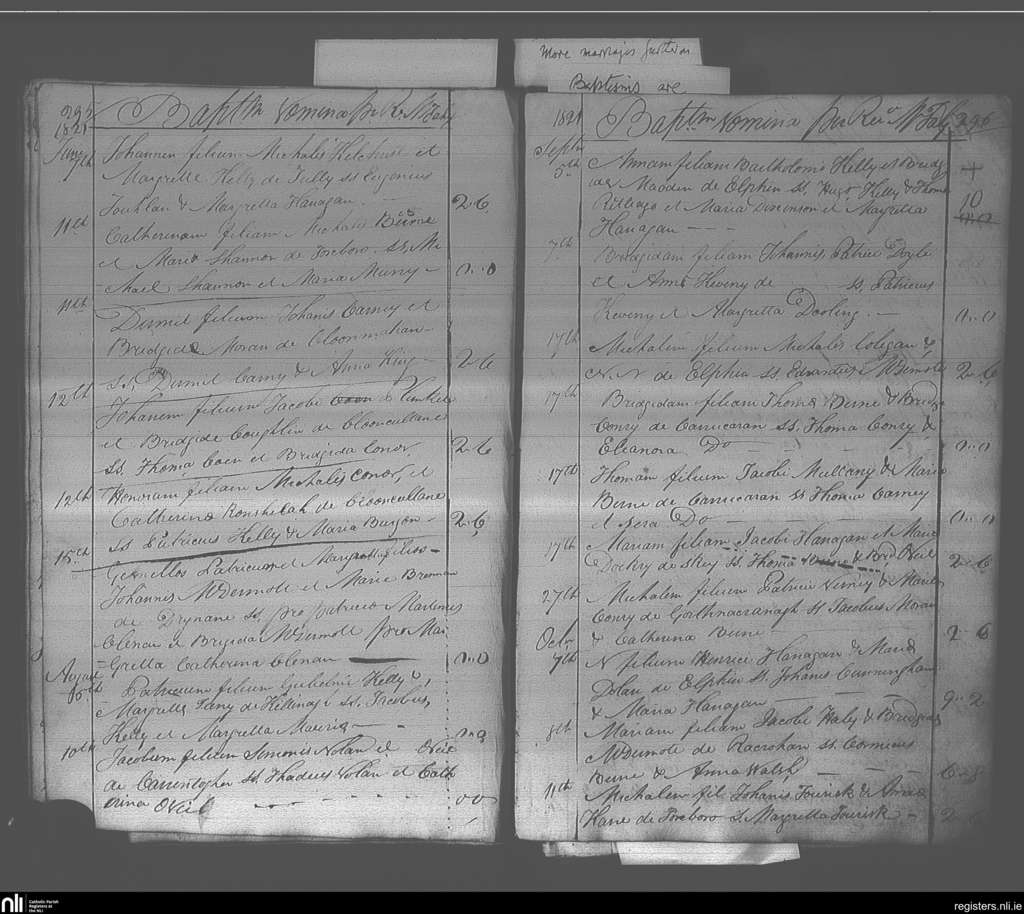 Elphin; County of Roscommon; Diocese of Elphin. Baptisms, June 1821 to Oct. 1821