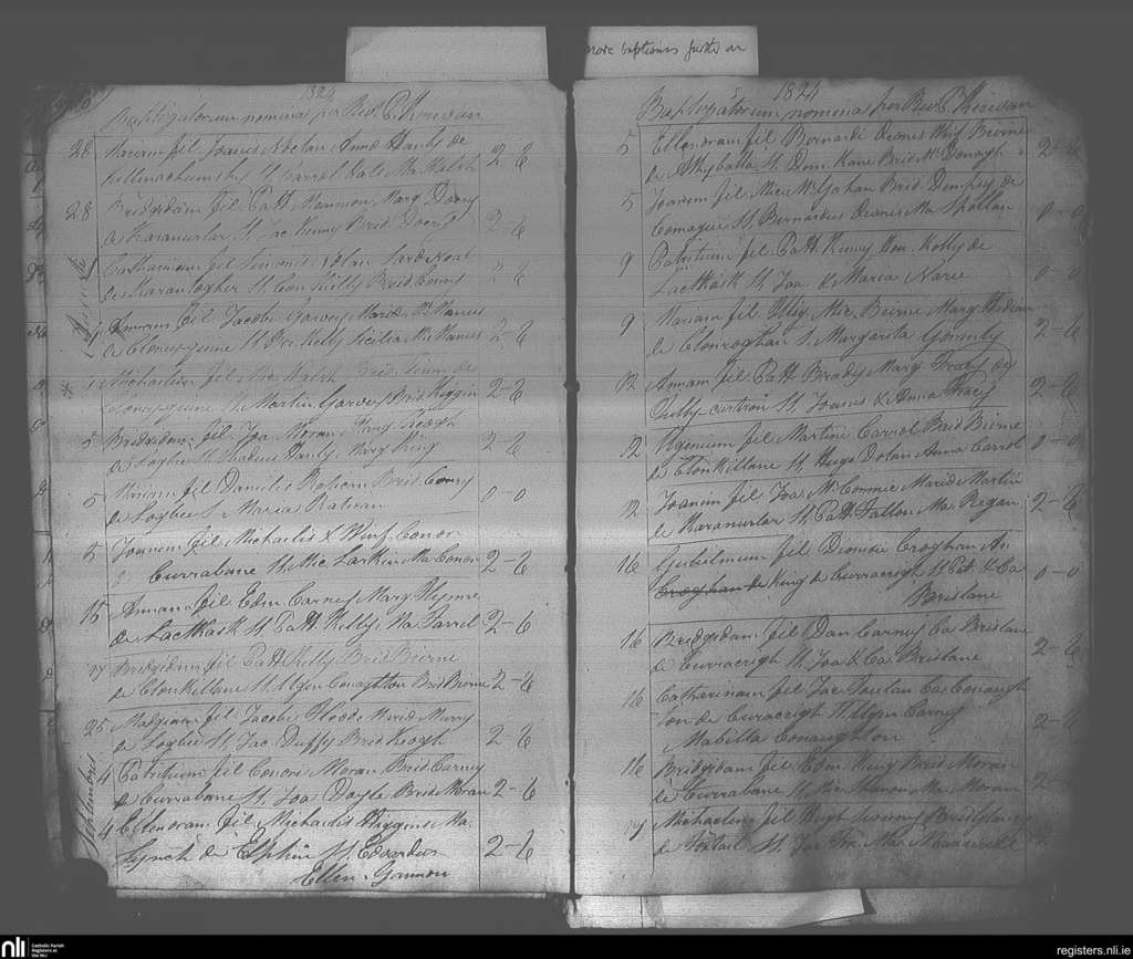 Elphin; County of Roscommon; Diocese of Elphin. Baptisms, July 1824 to Sep. 1824