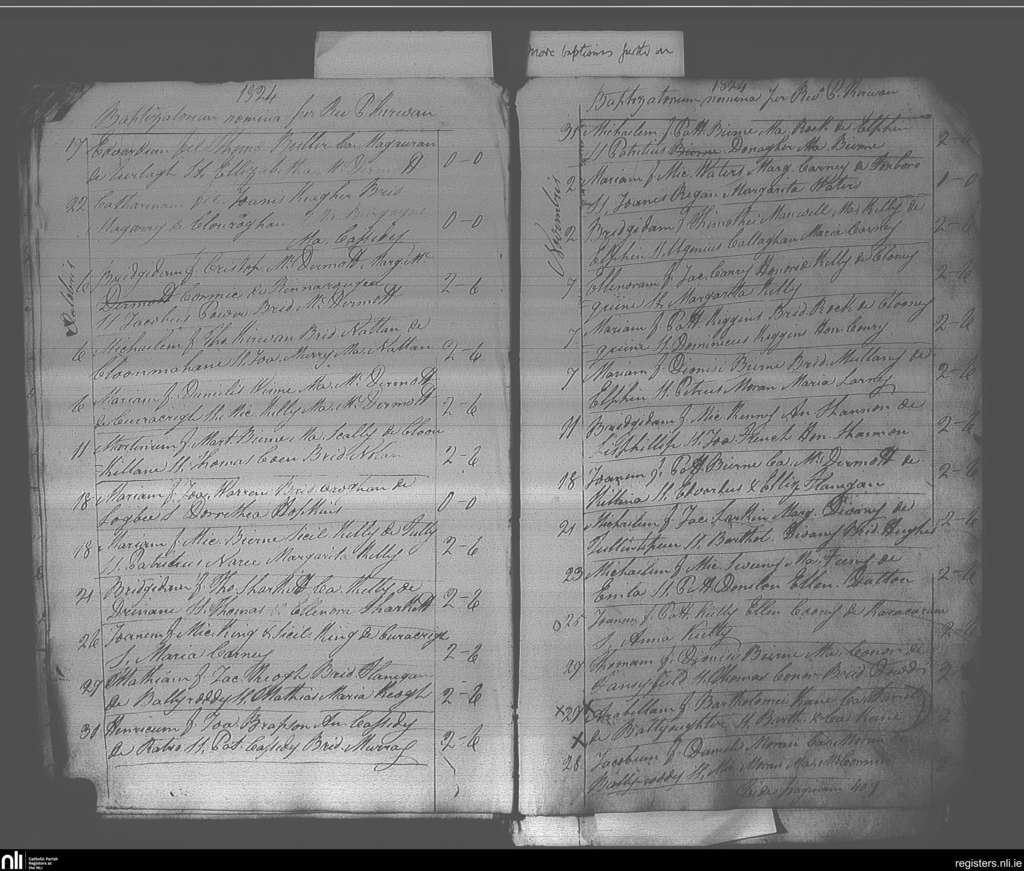 Elphin; County of Roscommon; Diocese of Elphin. Baptisms, Sep. 1824 to Nov. 1824