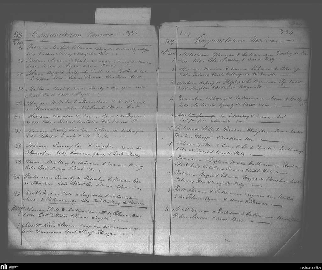 Elphin; County of Roscommon; Diocese of Elphin. Marriages, Feb. 1810 to Mar. 1810