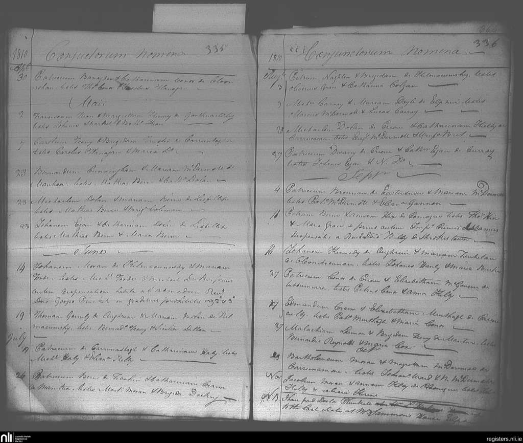 Elphin; County of Roscommon; Diocese of Elphin. Marriages, Apr. 1810 to Nov. 1810