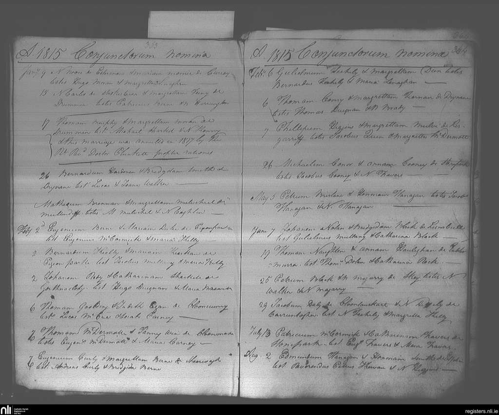 Elphin; County of Roscommon; Diocese of Elphin. Marriages, Jan. 1815 to Aug. 1815