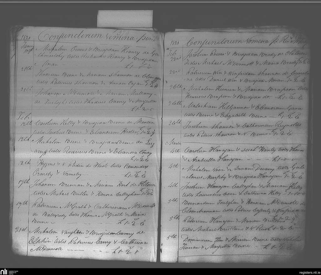 Elphin; County of Roscommon; Diocese of Elphin. Marriages, Jan. 1821 to Mar. 1821
