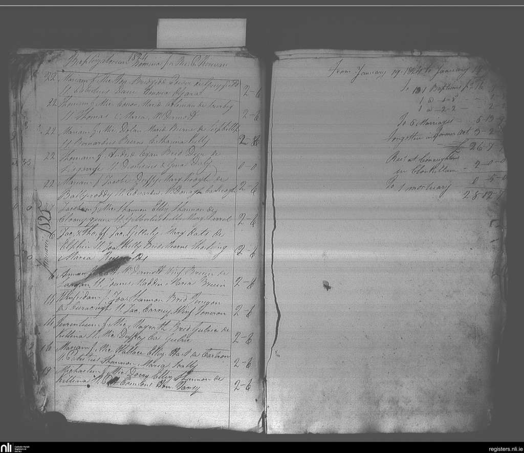 Elphin; County of Roscommon; Diocese of Elphin. Baptisms, Dec. 1824 to Jan. 1825