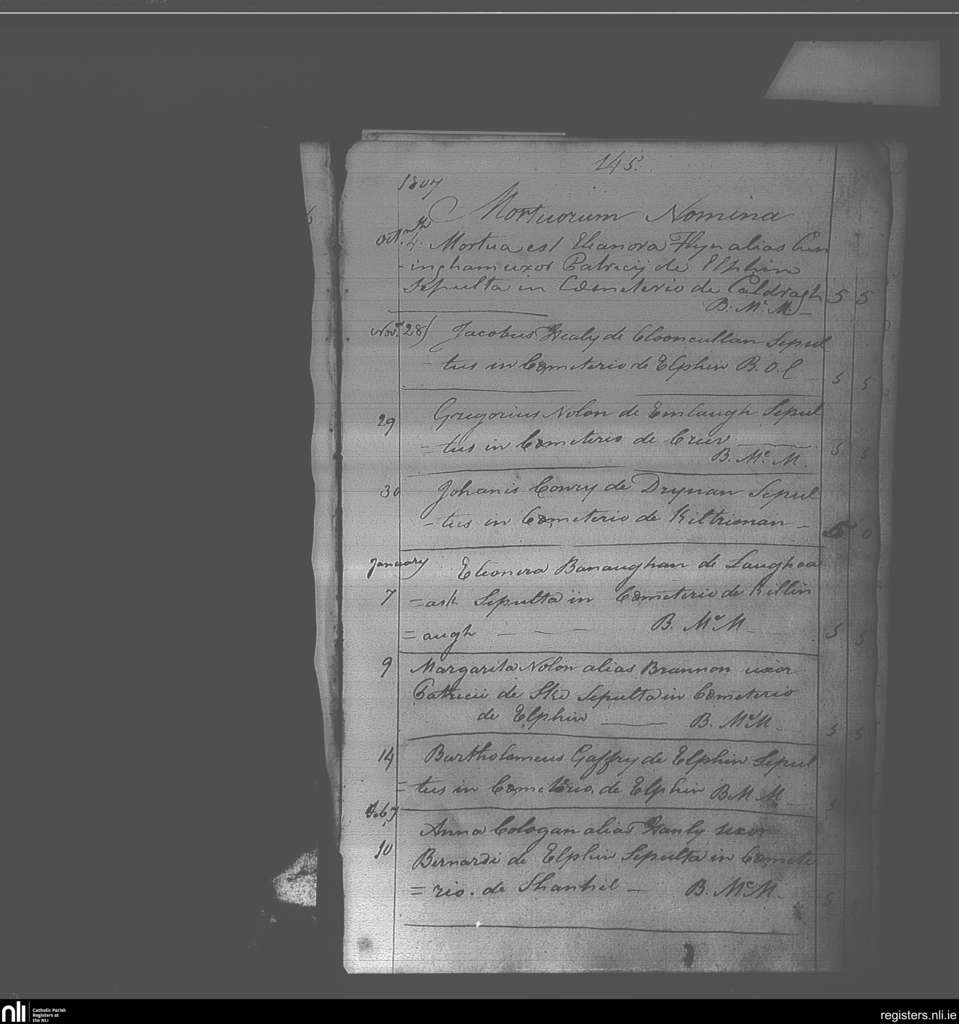 Elphin; County of Roscommon; Diocese of Elphin. Deaths, Oct. 1807 to Feb. 1808
