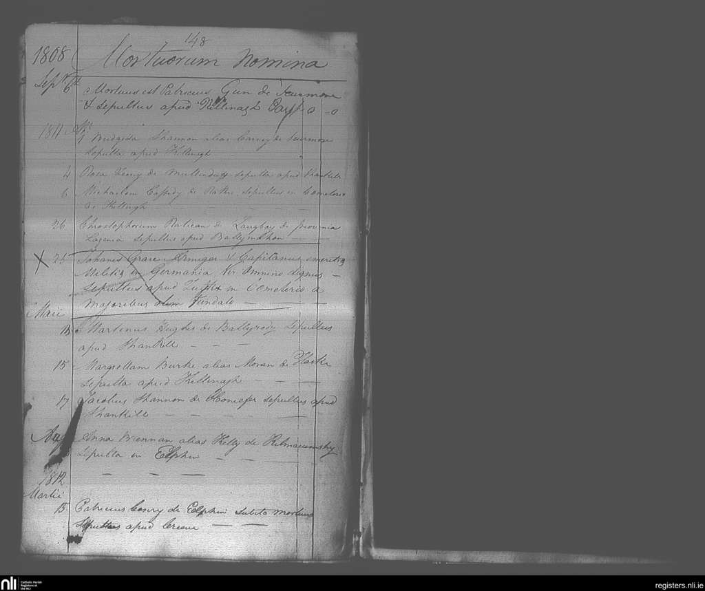 Elphin; County of Roscommon; Diocese of Elphin. Deaths, Sep. 1808 to Mar. 1812