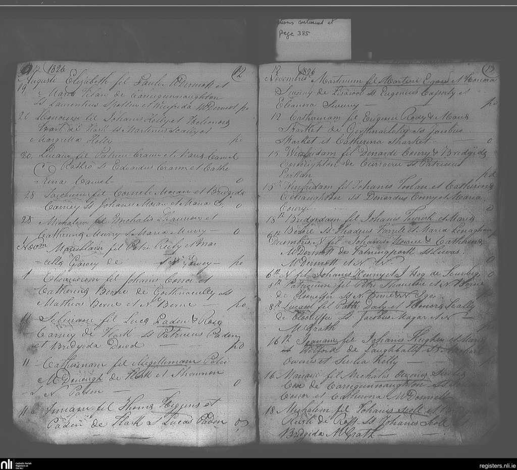 Elphin; County of Roscommon; Diocese of Elphin. Baptisms, Aug. 1826 to Dec. 1826