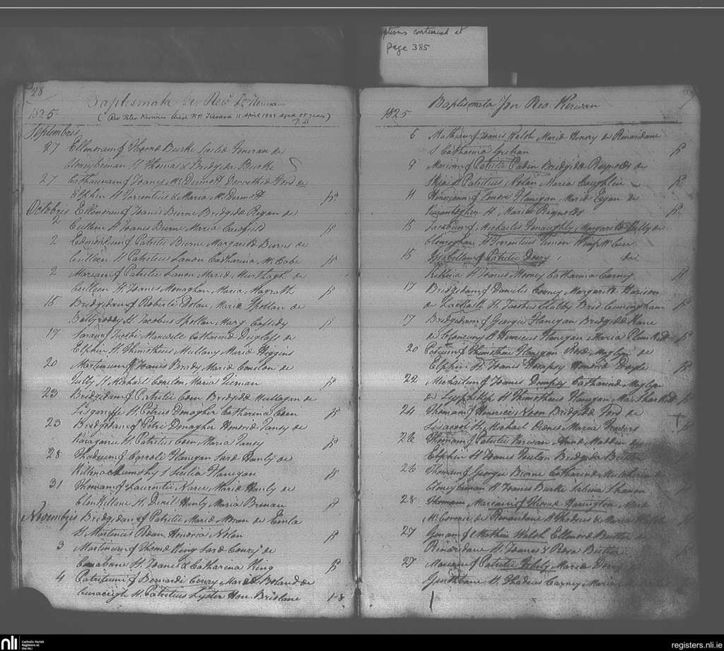 Elphin; County of Roscommon; Diocese of Elphin. Baptisms, Sep. 1825 to Nov. 1825