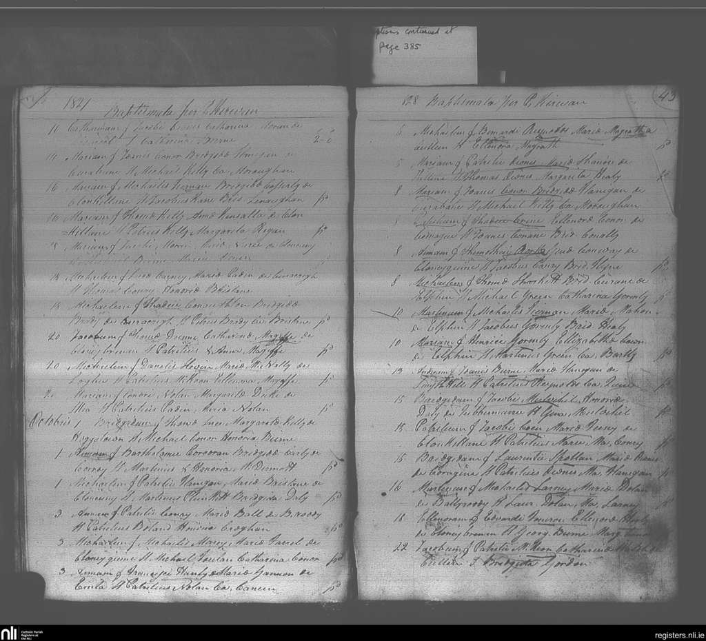 Elphin; County of Roscommon; Diocese of Elphin. Baptisms, Sep. 1827 to Oct. 1827