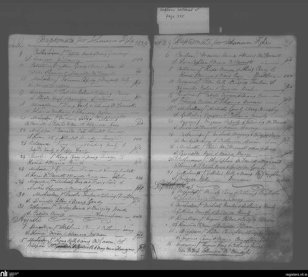 Elphin; County of Roscommon; Diocese of Elphin. Baptisms, July 1829 to Sep. 1829