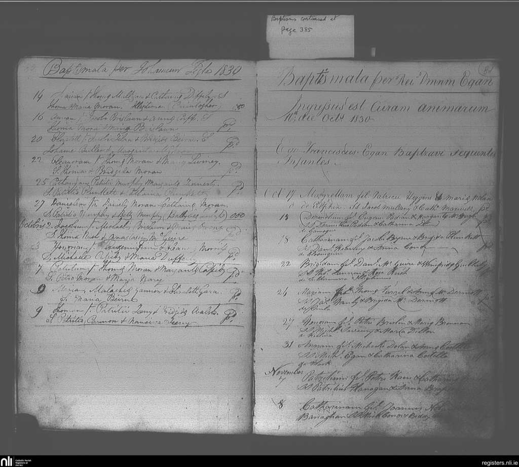 Elphin; County of Roscommon; Diocese of Elphin. Baptisms, Sep. 1830 to Nov. 1830