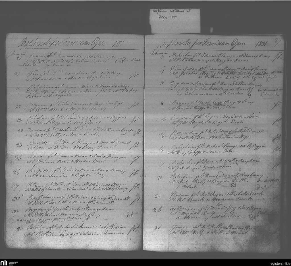 Elphin; County of Roscommon; Diocese of Elphin. Baptisms, Jan. 1831 to Feb. 1831