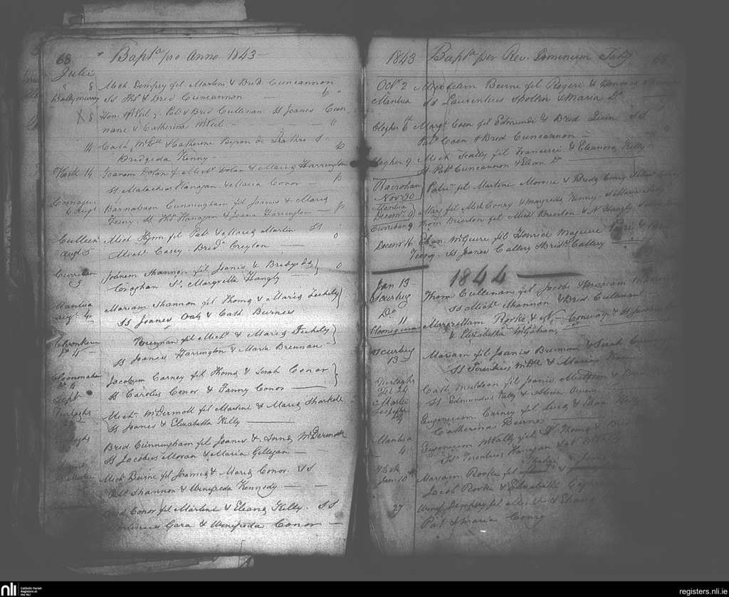Elphin; County of Roscommon; Diocese of Elphin. Baptisms, July 1843 to Mar. 1844