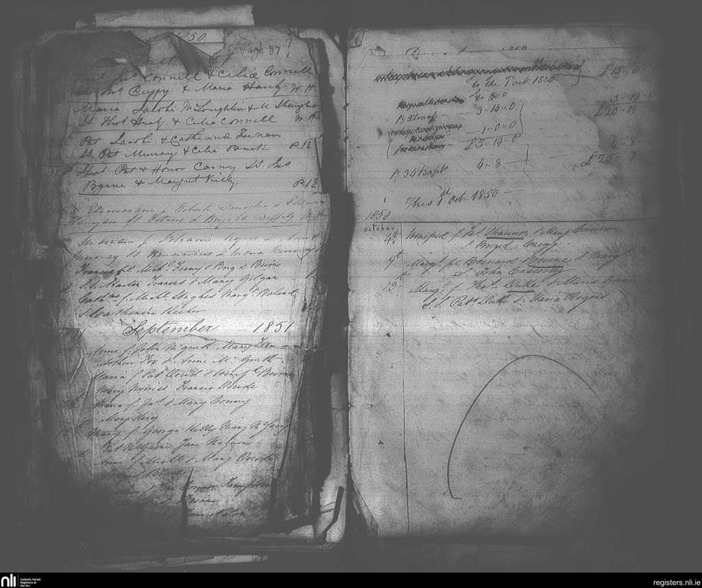 Elphin; County of Roscommon; Diocese of Elphin. Baptisms, Oct. 1850 to Sep. 1851