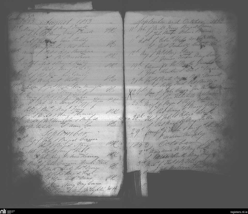 Elphin; County of Roscommon; Diocese of Elphin. Baptisms, Aug. 1853 to Oct. 1853
