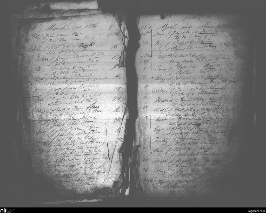 Elphin; County of Roscommon; Diocese of Elphin. Baptisms, Mar. 1854 to June 1854