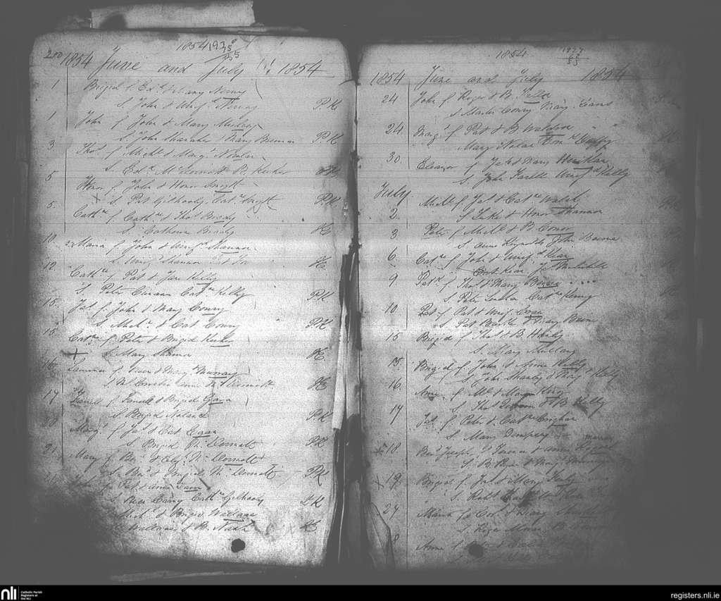 Elphin; County of Roscommon; Diocese of Elphin. Baptisms, June 1854 to July 1854