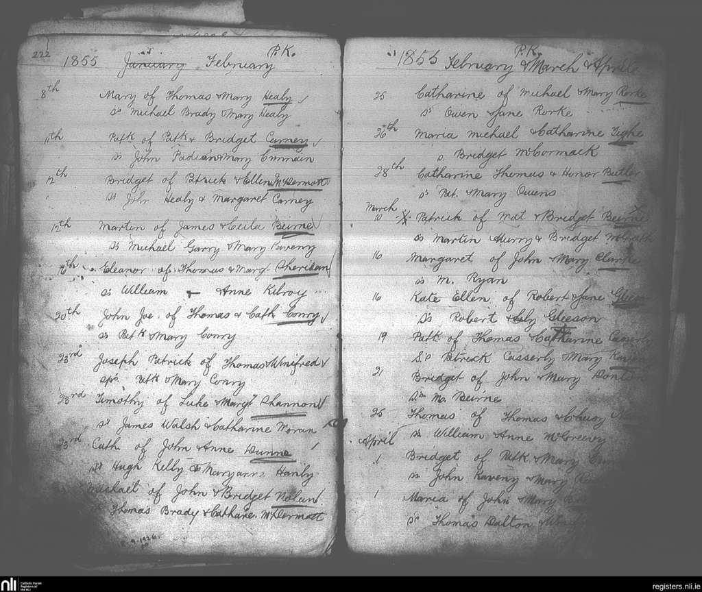 Elphin; County of Roscommon; Diocese of Elphin. Baptisms, Jan. 1855 to Apr. 1855