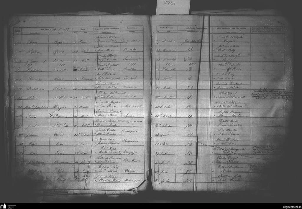 Elphin; County of Roscommon; Diocese of Elphin. Baptisms, Dec. 1876 to July 1877