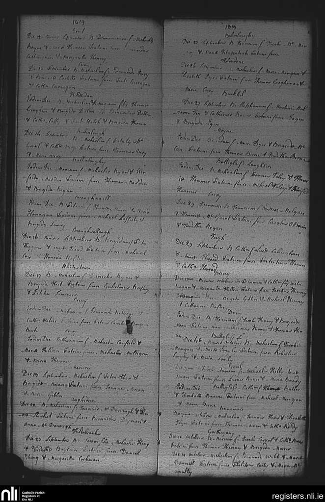 Loughglynn; County of Roscommon; Diocese of Elphin. Baptisms, Sep. 1819 to Oct. 1819