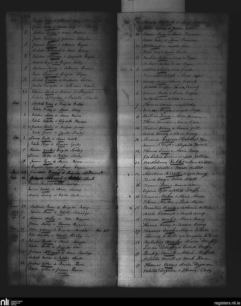 Loughglynn; County of Roscommon; Diocese of Elphin. Marriages, Feb. 1856 to Feb. 1857