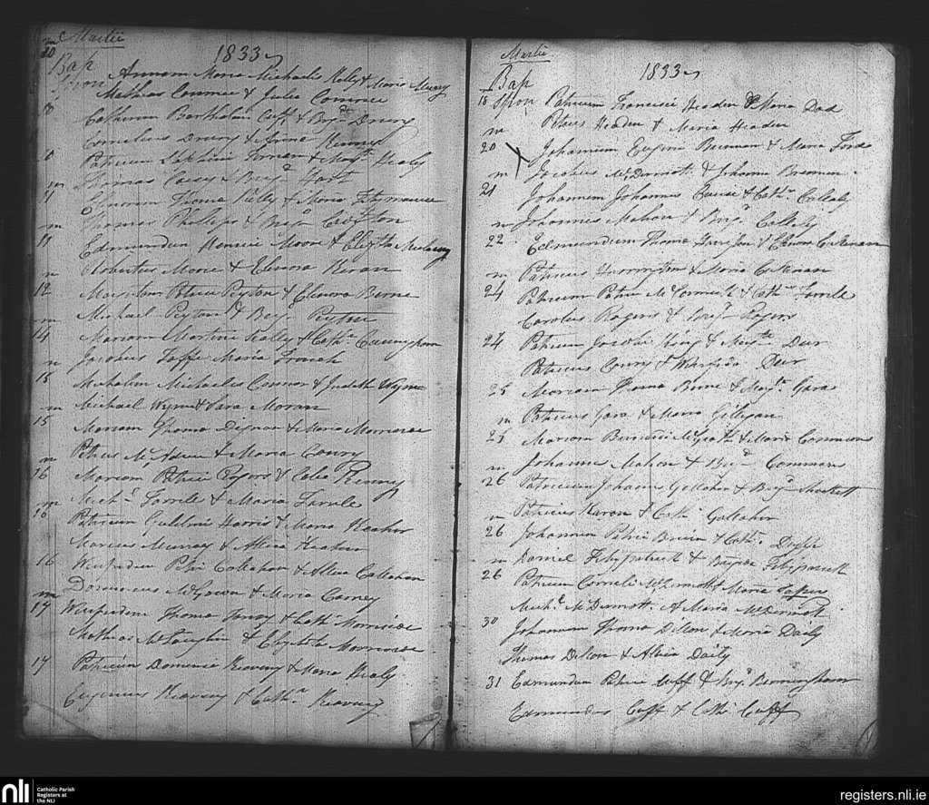 Tibohine; County of Roscommon; Diocese of Elphin. Baptisms, Mar. 1833