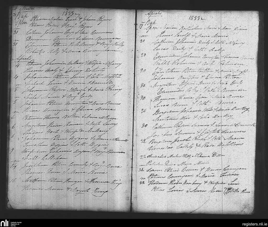 Tibohine; County of Roscommon; Diocese of Elphin. Baptisms, Mar. 1833 to Apr. 1833