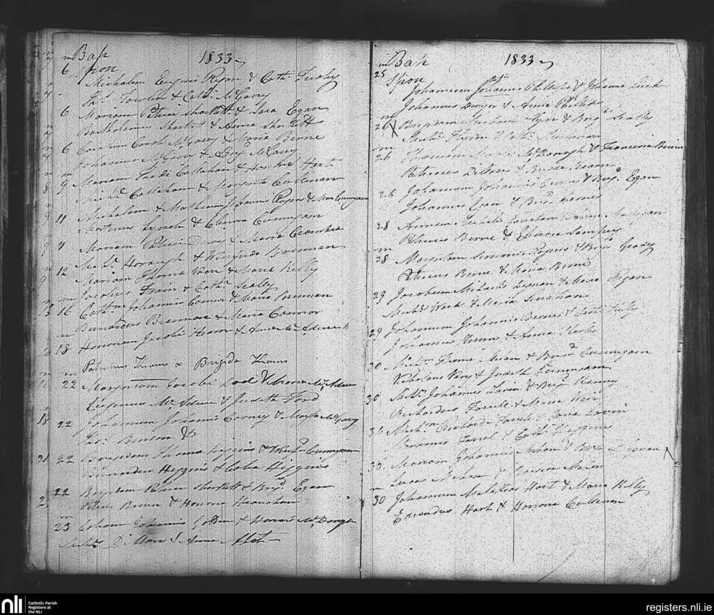 Tibohine; County of Roscommon; Diocese of Elphin. Baptisms, Sep. 1833