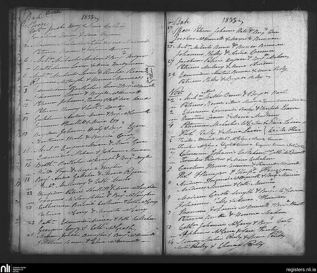 Tibohine; County of Roscommon; Diocese of Elphin. Baptisms, Oct. 1833 to Nov. 1833