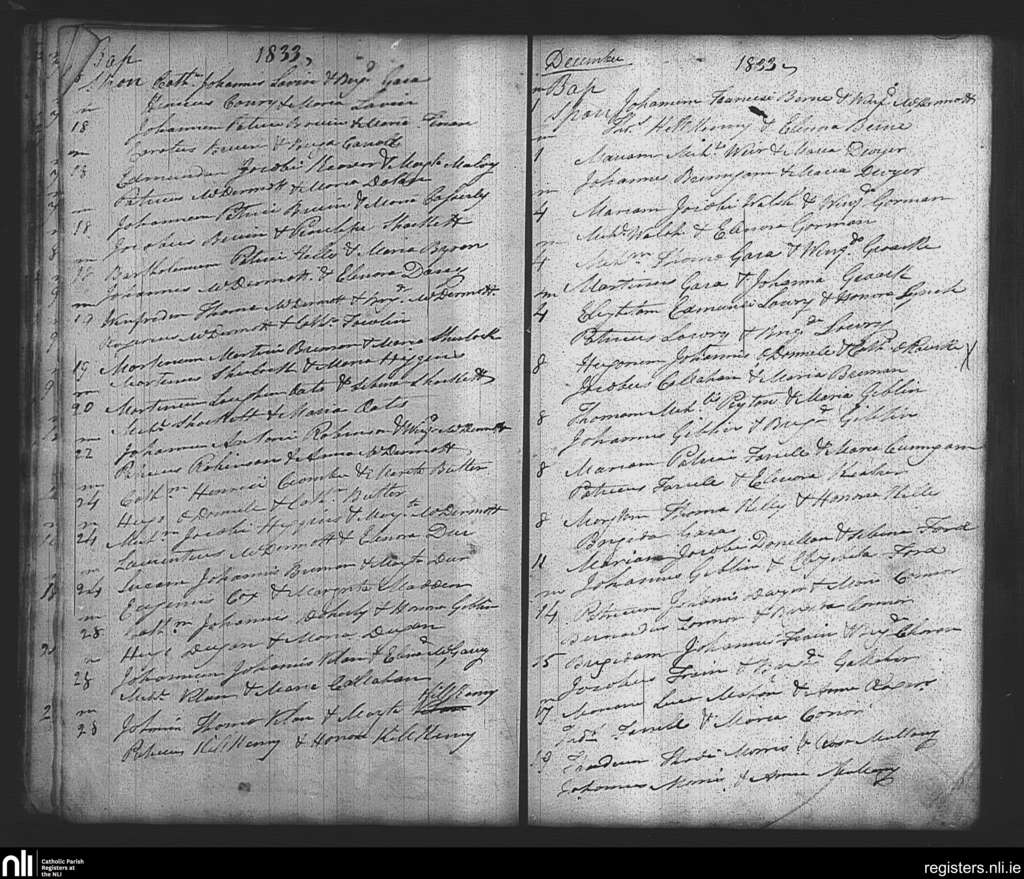 Tibohine; County of Roscommon; Diocese of Elphin. Baptisms, Nov. 1833 to Dec. 1833
