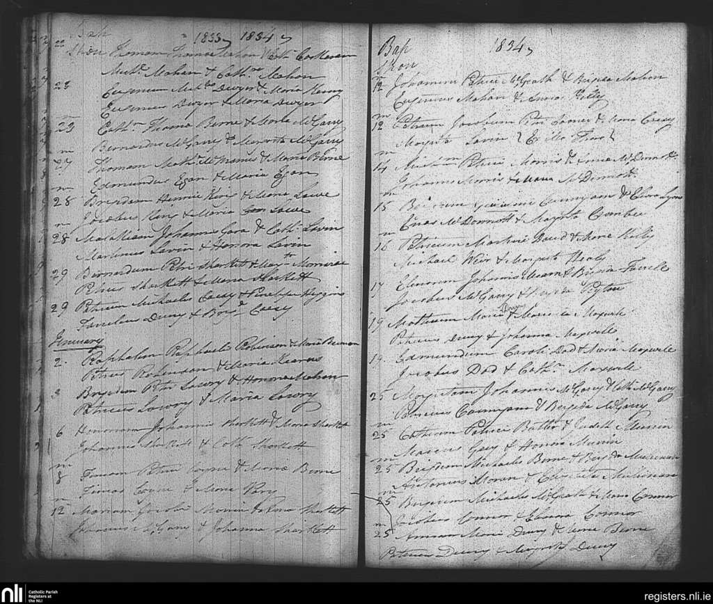 Tibohine; County of Roscommon; Diocese of Elphin. Baptisms, Dec. 1833 to Jan. 1834